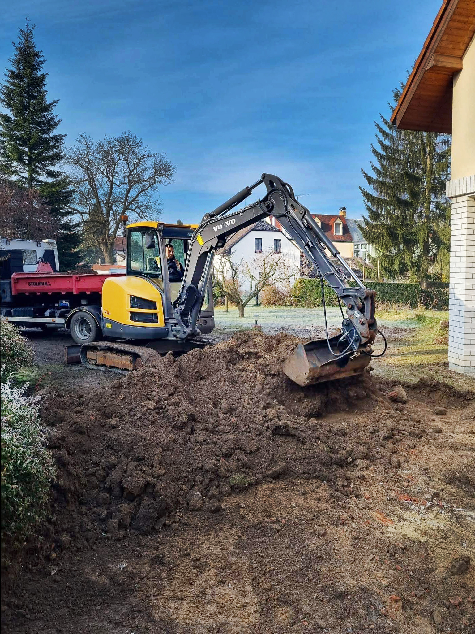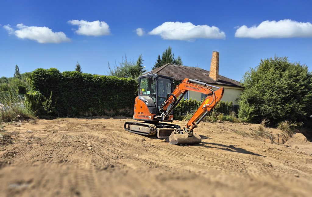 Výkopové práce pro bazény, odvodnění a drenáž, tvorba jezírek a zahradních vodních prvků, příprava podloží pro stavby.